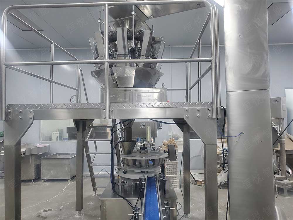 ②Z型上料機或鬥式上料機自動上料,多頭組合秤將在灌裝填充前自動計量稱重並投放物料