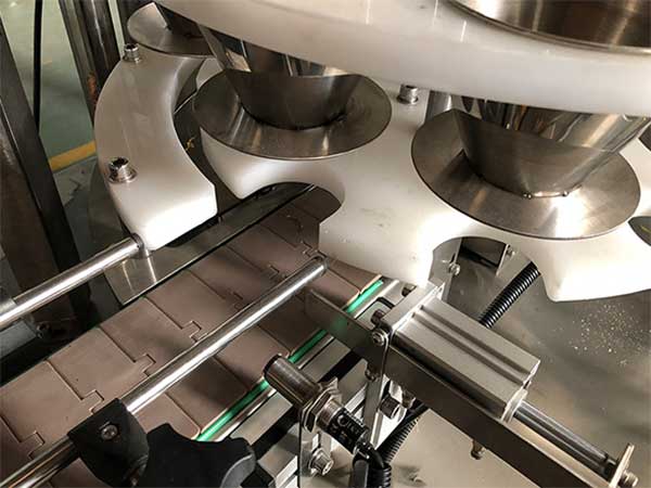 組合秤顆粒灌裝機是一種先進的包裝設備,它將組合秤的高精度稱重技術與灌裝功能相結合,其工作原理通常是通過多個稱重單元同時工作,快速準確地組合出接近目標重量的物料,然後將稱好的物料精準地灌裝到容器中。顆粒罐裝機與理罐機、封罐機、搓蓋旋蓋機、貼標機、打碼機等設備通過鏈板輸送機組合成全自動顆粒罐裝線滿足企業生產需要。